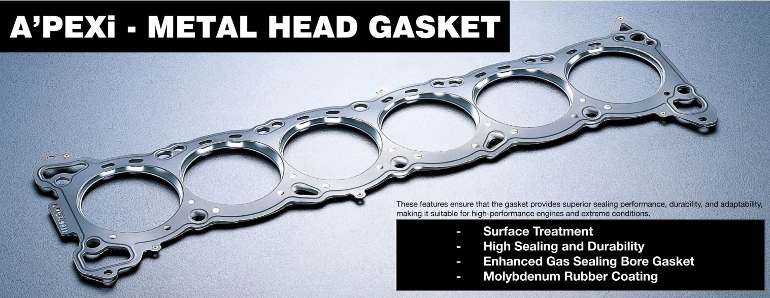 The A’PEXi Metal Head Gasket offers unmatched durability and sealing performance for high-horsepower engines. Factory head gaskets are often unable to withstand the intense pressures of high-output operation, leading to gasket failure that can cause severe engine damage. A’PEXi’s advanced metal head gaskets are engineered to provide reliable protection and enhanced performance, making them the ideal upgrade for any performance build.