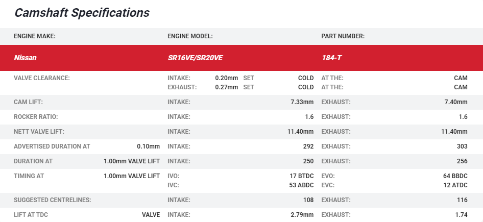 Nissan SR20VE-T cams for high HP turbocharged engines for drag racing