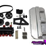 The OEM front main oil squirter applies oil to the timing chain. These are known for popping out. We upgrade this with our own one that threads in.