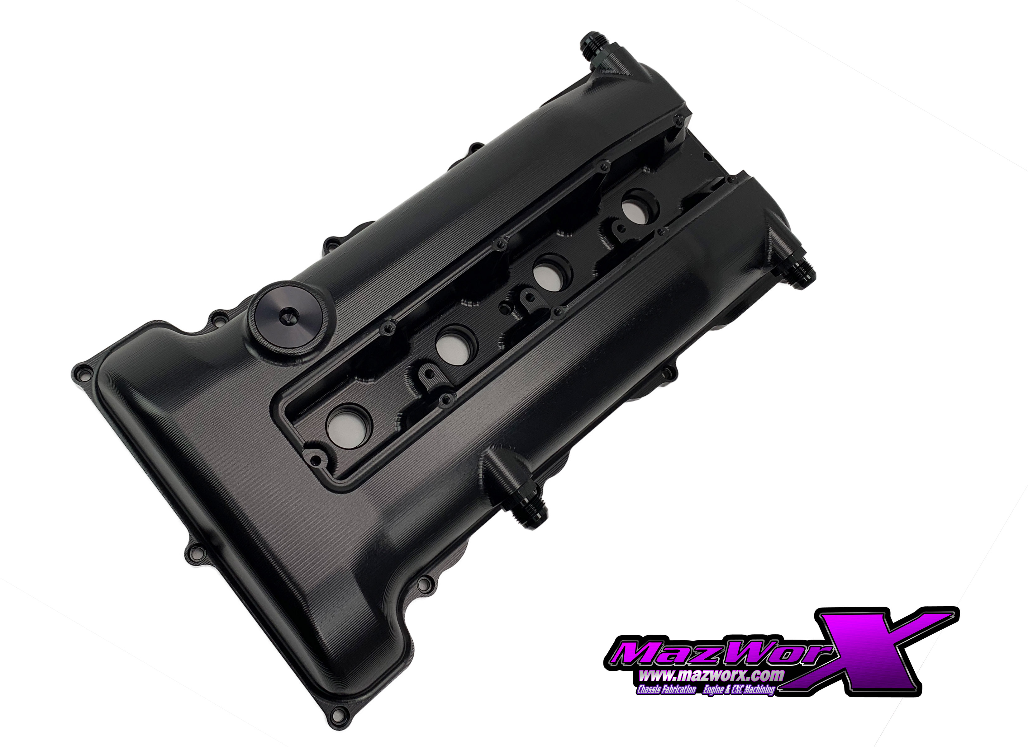 This valve cover is a hybrid between the P11/P12 and S14. It’s designed for RWD applications when using a VE head. CNC machined from billet 6061-T6. Full internal S14 style baffling with 3x -10an breather fittings. Custom low profile oil fill cap. Designed to fit R35 ignition coils without any extra brackets. Uses orings instead of OEM gaskets. We provide half moons to fill in the head so the orings will seal. You will cut down the rear exhaust cam cap to remove the distributor provision.