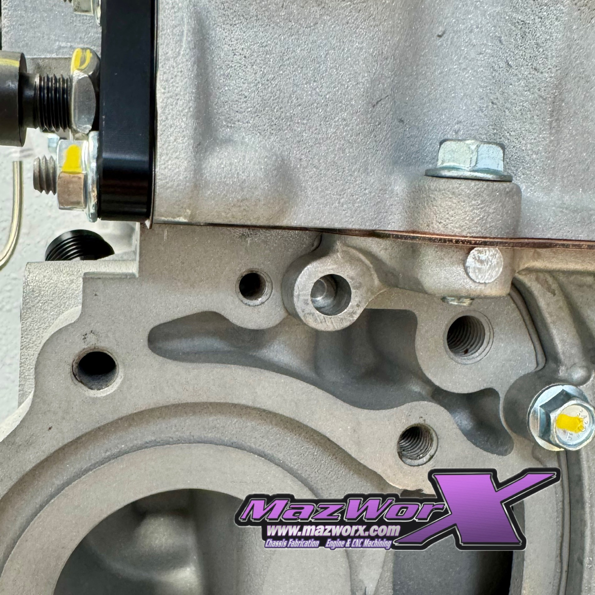 When using a VE oil pump on an S14/S15 block, the top left front cover hole does not align. This is due to the oil passage for the VTC. So we developed a simple clamp that uses the S14/S15 existing hole and puts clamping force on the small section so there’s no chance of separating and leaking oil.